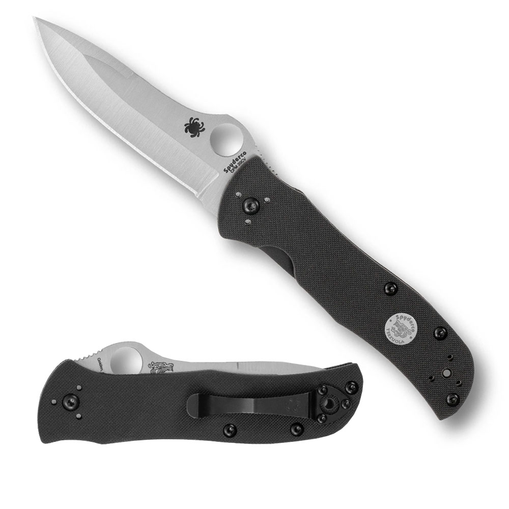 Blade Magazine Hall of Fame member and custom knifemaker Bob Terzuola has been setting standards in mission-ready fixed-blades since the early eighties. In 1981, Spyderco co-founder, Sal Glesser, revolutionized the knife industry with the introduction of a pocket clip on a folding knife. He then paired that concept with Spyderco’s now iconic Trademark Round Hole, creating the first one-hand opening, clip-carry pocketknife. In 1990, Bob became Spyderco’s first collaborator, incorporating Sal’s innovations into his tactical knife designs to yield the groundbreaking C15 Bob Terzuola. In 1999, Spyderco worked with Bob again to introduce the Starmate, a design that combined the key qualities of Bob’s Advanced Technology Combat Folder (ATCF) with the advantages of Sal’s Trademark Round Hole and pocket clip. Twenty-five years later, Spyderco is proud to celebrate Bob and Sal by reintroducing this limited-edition Starmate Sprint Run®. Its hollow-ground, modified clip-point blade is crafted from high-performance CPM 20CV particle metallurgy stainless steel. The satin-finished blade is paired with a handle built with peel-ply-textured G-10 scales and nested, skeletonized stainless steel liners that form the foundation of the knife’s sturdy Michael Walker LinerLock mechanism. The handle features an inlaid Terzuola logo and includes a four-position pocket clip that supports all carry positions.